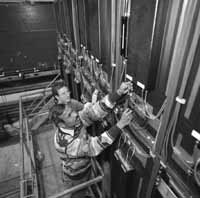 Earlier this month, Physicist Naba Mondal, of India's Tata Institute of Fundamental Research, joined DZero colleague and Fermilab physicist Tom Diehl in commissioning activities for the detector's central muon ìcosmic capî scintillation counters. For 18 months, Tata scientists, who built the scintillation counters, were unable to install and test their half-million-dollar instrumentation system at Fermilab because of diplomatic sanctions levied against Indian scientific institutions in the wake of India's 1998 nuclear weapons tests. In December, 1999, the U.S. Department of Commerce removed Tata Institute from the list of banned scientific institutions, in a move described as "a consensus decision by the Administration to more tightly focus the sanctions on those Indian entities most directly involved" in the weapons activities. More of Mondal's Tata colleagues will return to DZero this summer. Welcome back, Tata!