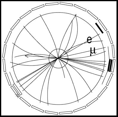 Physicists recognize particles produced in collisions by their electronic signatures, shown graphically by computers. A "lego plot" shows one characteristic signature pattern we expect to see in the decay of a top quark. The height of each lego tower shows the amount of energy detected in each section of a detector's calorimeter. Although we can't see the top quark itself, we can recognize its signature. Some particles, including top, exist for such a short time before they decay into other particles that we don't actually find their signatures. Instead, we see the signatures of their decay products. A particle we are looking for may have more than one possible way of decaying--top has many decay channels--and thus more than one possible signature.